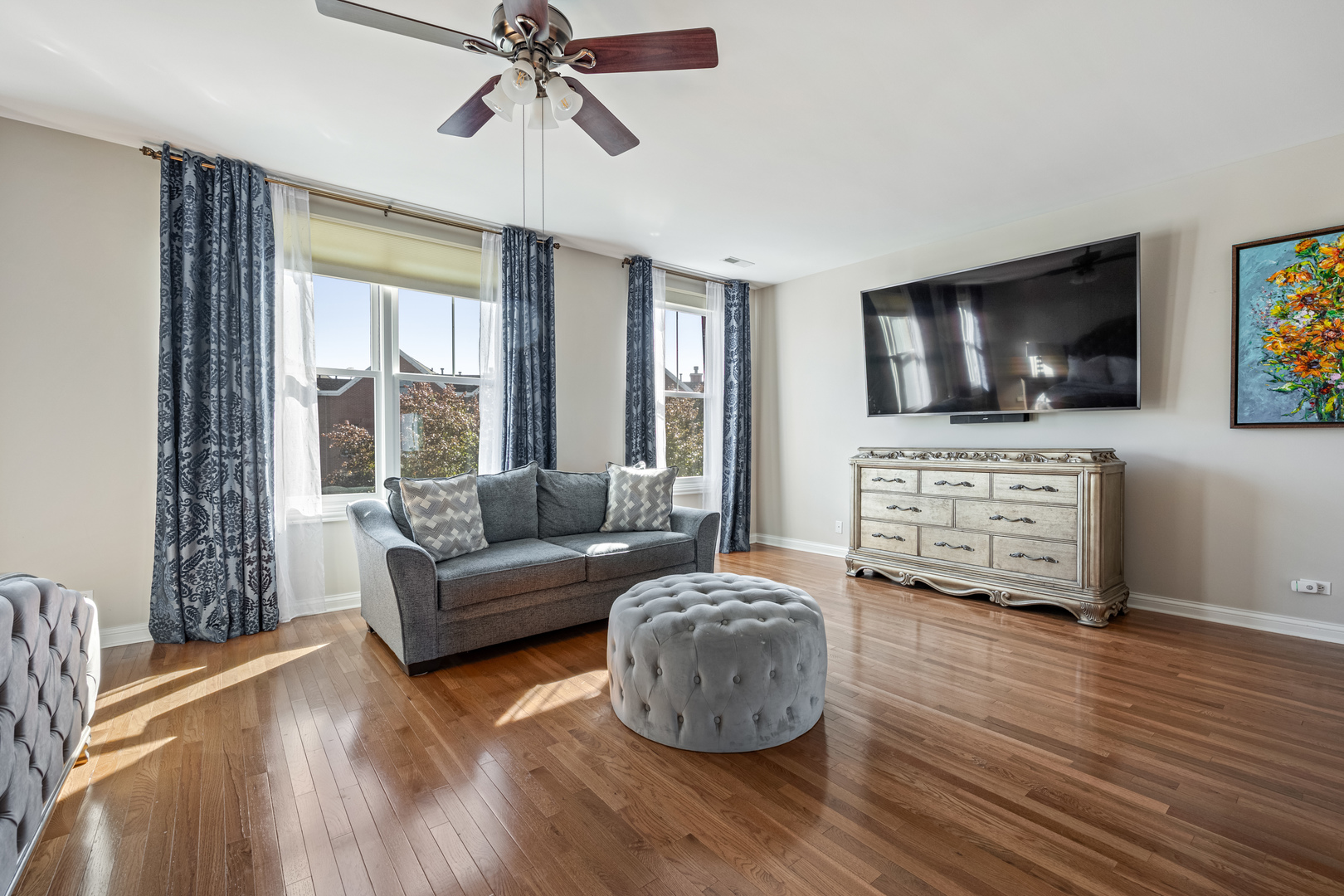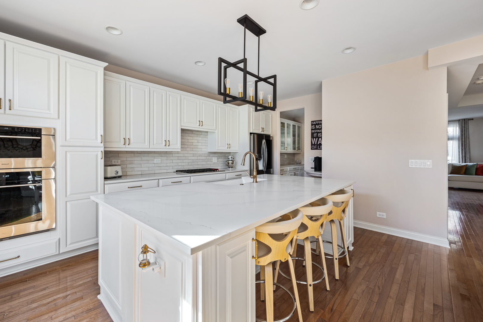 This exquisitely renovated Tower Crossing townhome in the heart of The Glen has been transformed with elegant updates and designer finishes throughout 3,840 square feet of refined living space. The largest Blackstone model, in the premiere courtyard location, offers four levels of luxury, with stunning all-white gourmet Kitchen renovated in 2020 with custom cabinetry, beadboard island, Wolf 5-burner cooktop, Bosch dishwasher, LG refrigerator and white gourmet Butler's Pantry ideal for entertaining. The serene Primary Suite showcases a spa-quality bath with double step-in shower with dual sprays and new glass enclosure, along with custom walk-in closets. Beautiful hardwood floors, custom plantation shutters and stylish fireplace enhance the elegant main living areas, while the outdoor patio and private balcony overlook a beautifully landscaped courtyard. Additional highlights include epoxy garage floor, gas line for outdoor grilling, Nest door-ring, dual-zoned HVAC and new water heater (2023). Perfectly positioned just steps from Glen Town Center shops, dining, Metra, tennis, golf, pickleball and rec center in Glenview's award-winning school district, this residence embodies an amazing lifestyle and sophisticated living at its best.