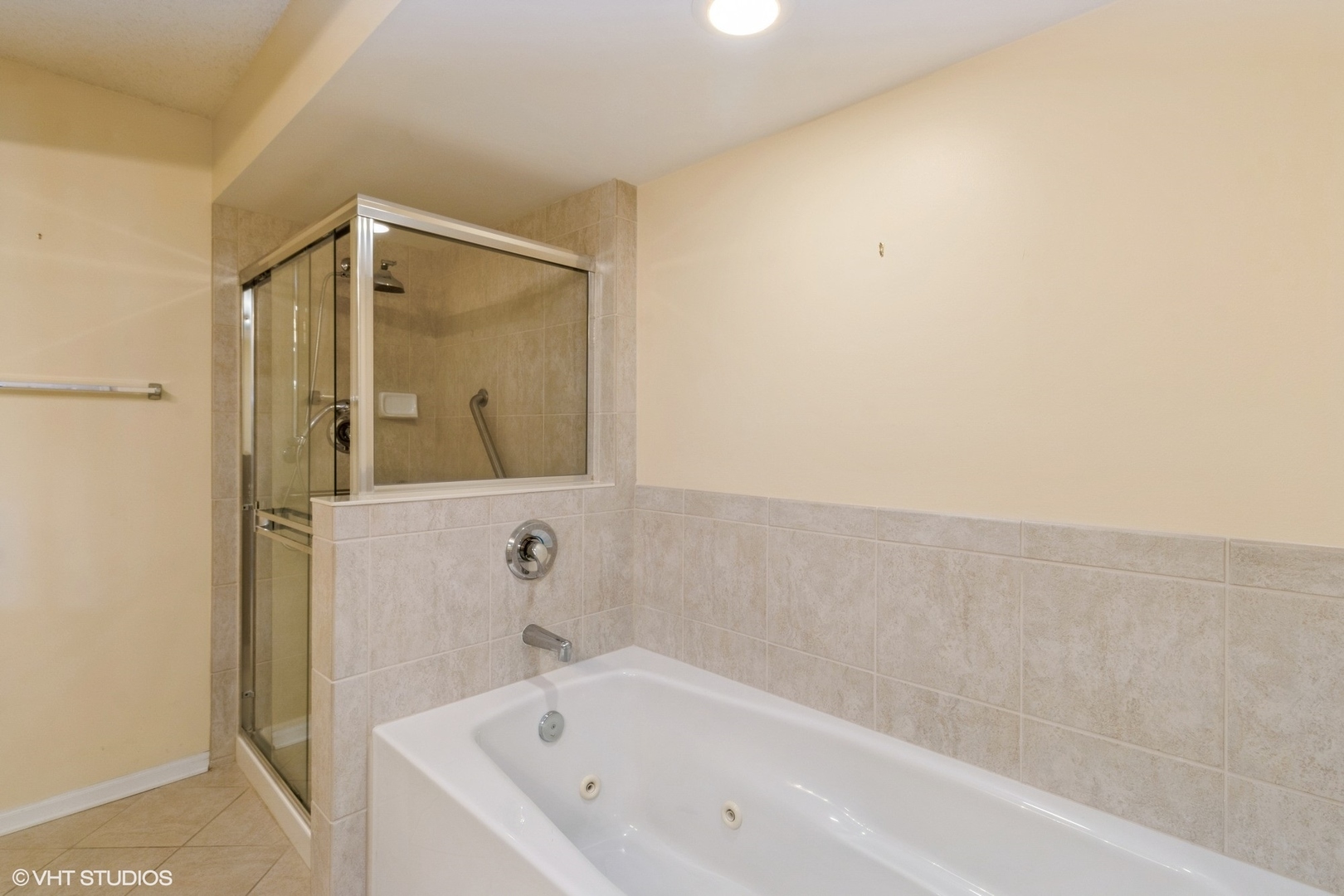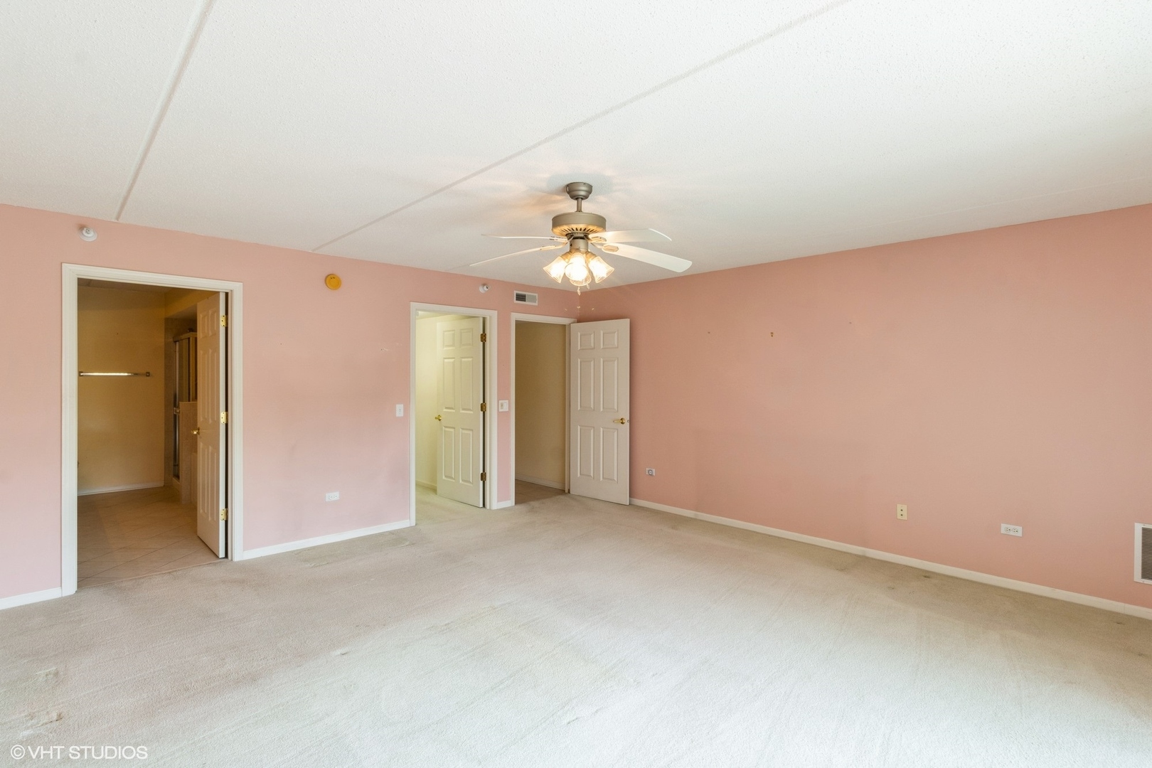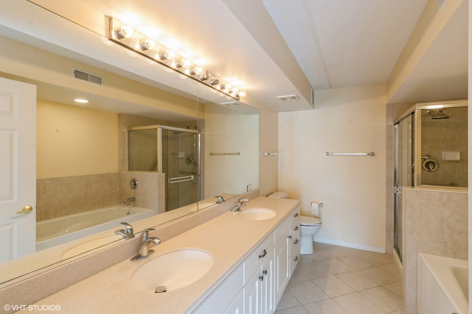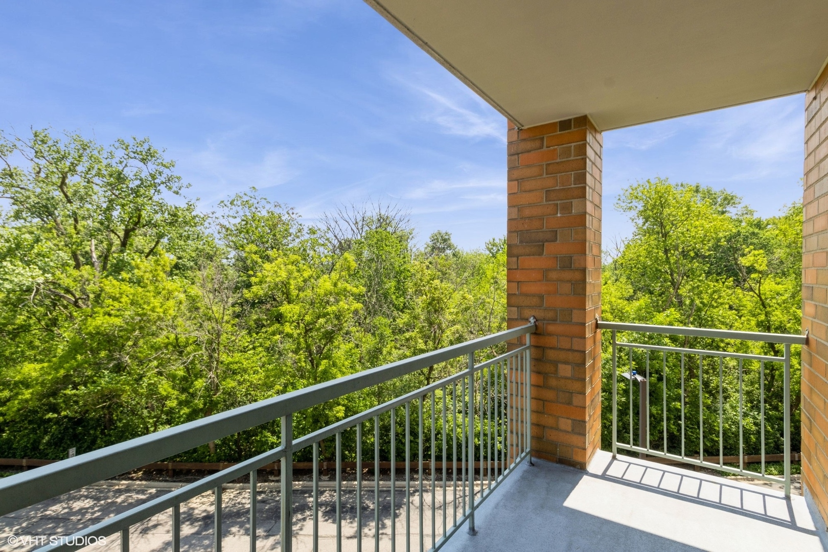 Rarely available and much desired 3 bedroom / 2 full bath corner unit with over 2200 sq ft of living space! You'll love the 2 balconies, 1 facing east and another facing south giving you a panoramic view of the forest preserve, river, and more. Large kitchen with Corian countertops, abundant cabinet space and large eating area. Huge Master Suite with walk in closet, and full bathroom with double sinks, jetted tub & separate walk-in shower. 2 more extra-large bedrooms. Hot water radiant heat in floor. Plenty of closet space throughout. Includes 2 indoor parking spots in heated garage. Large storage unit: 5' 6" Deep x 7' 6" Wide x 10' 6" Tall. Plenty of exterior parking too. Jetted Tub As Is. Dining Room Right-Side Window As Is.